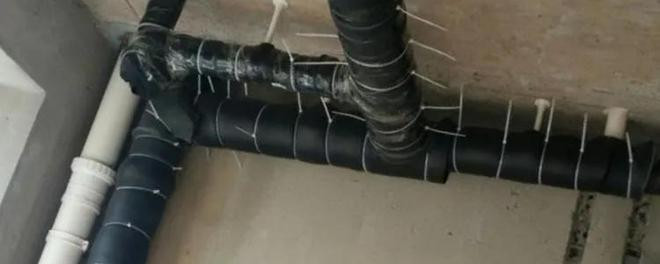 结果,装修公司也确实用了加厚的黑色隔音材质,将下水管道给包上了。